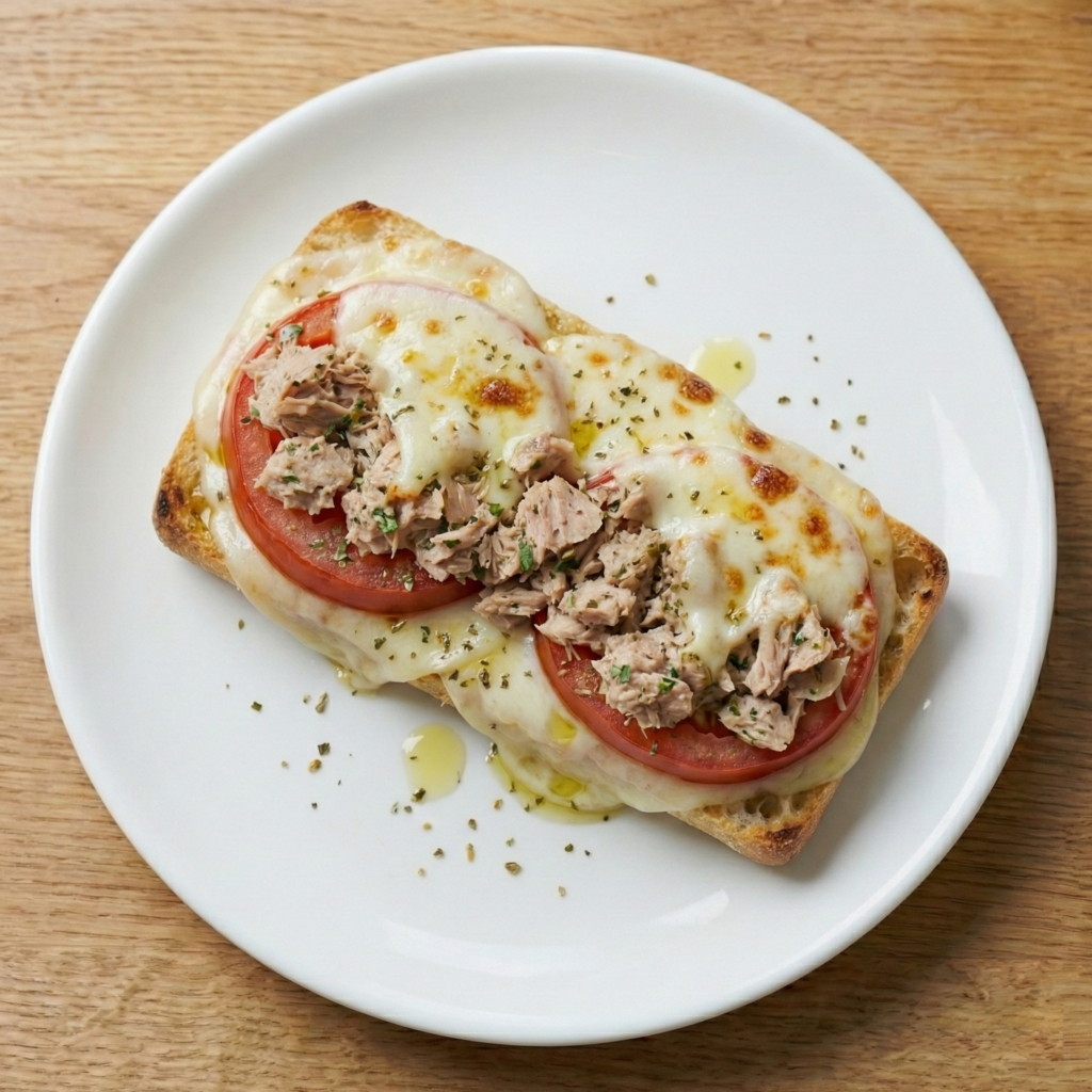 Tomate, atún y queso fundido