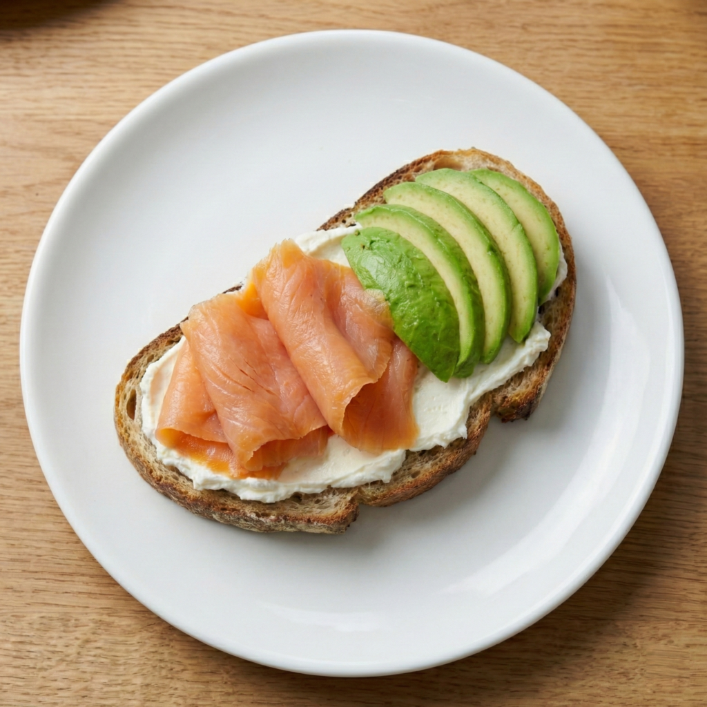 Queso cremoso, salmón, aguacate